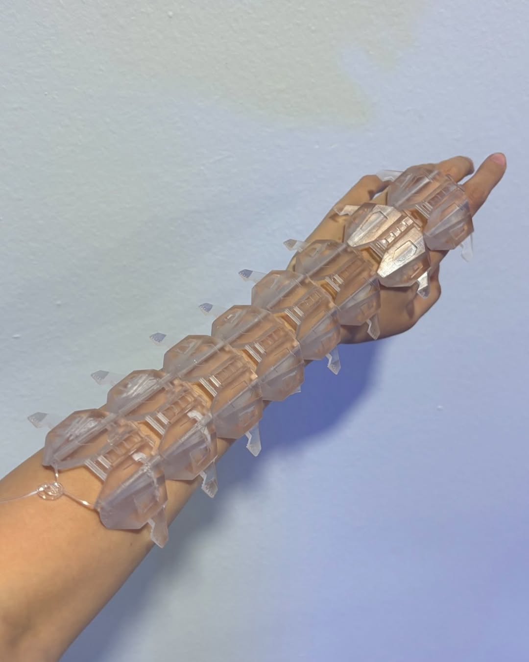This x-ray ︎︎ collection sits in the space between jewelry, fashion, and armor. Every piece is 3D-printed and cast in clear resin, exposing its mechanical inner workings while simultaneously refracting and bending the surrounding light.