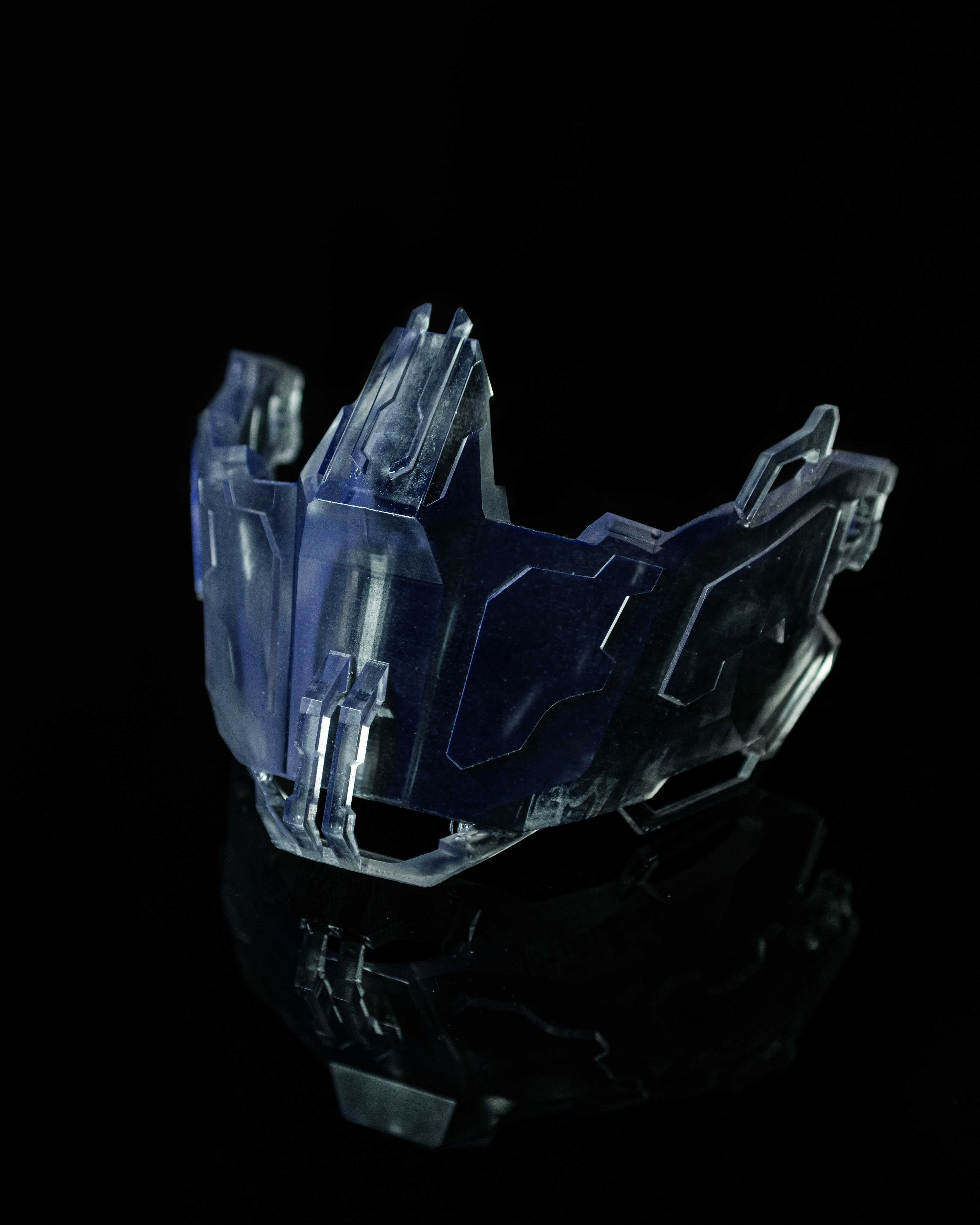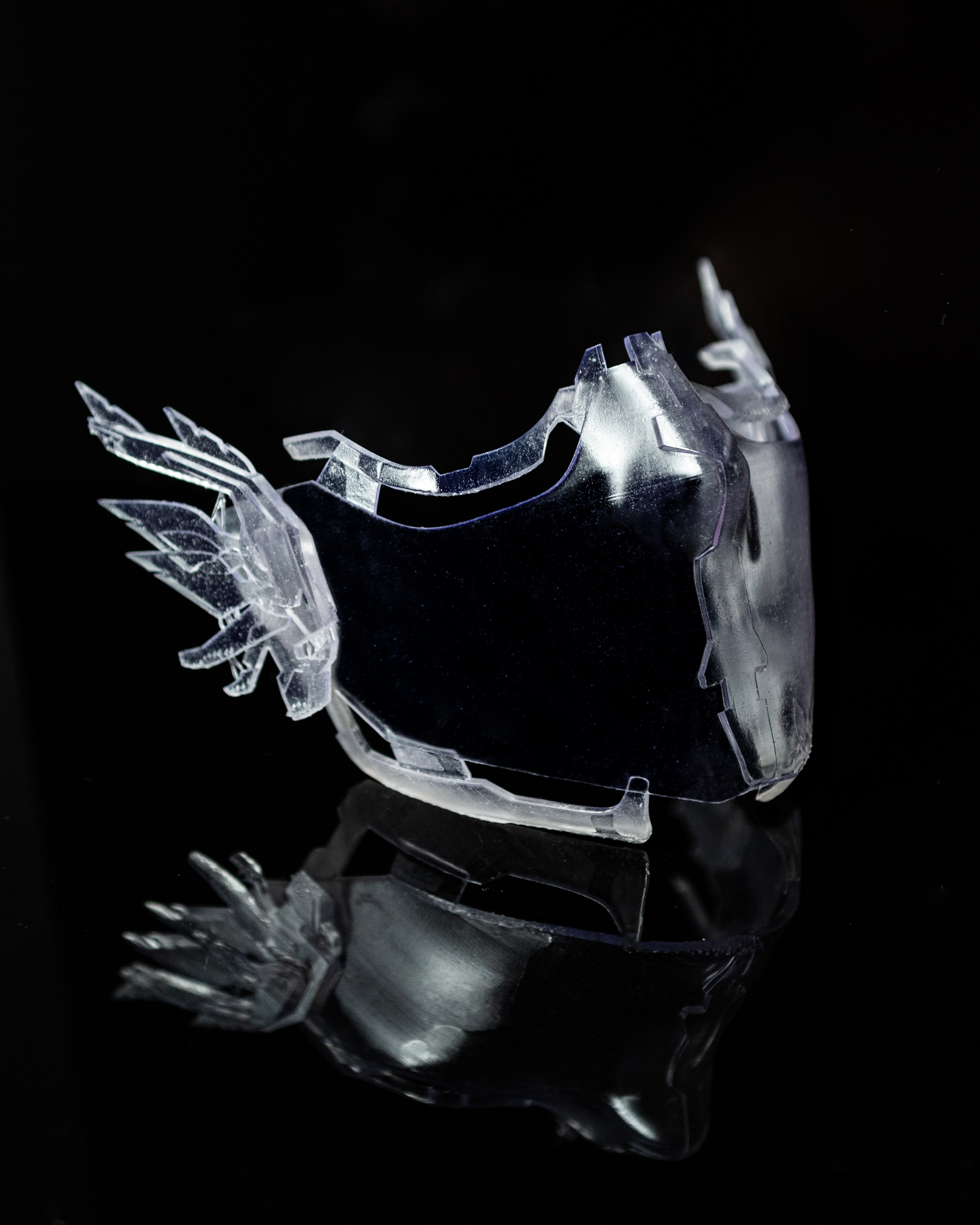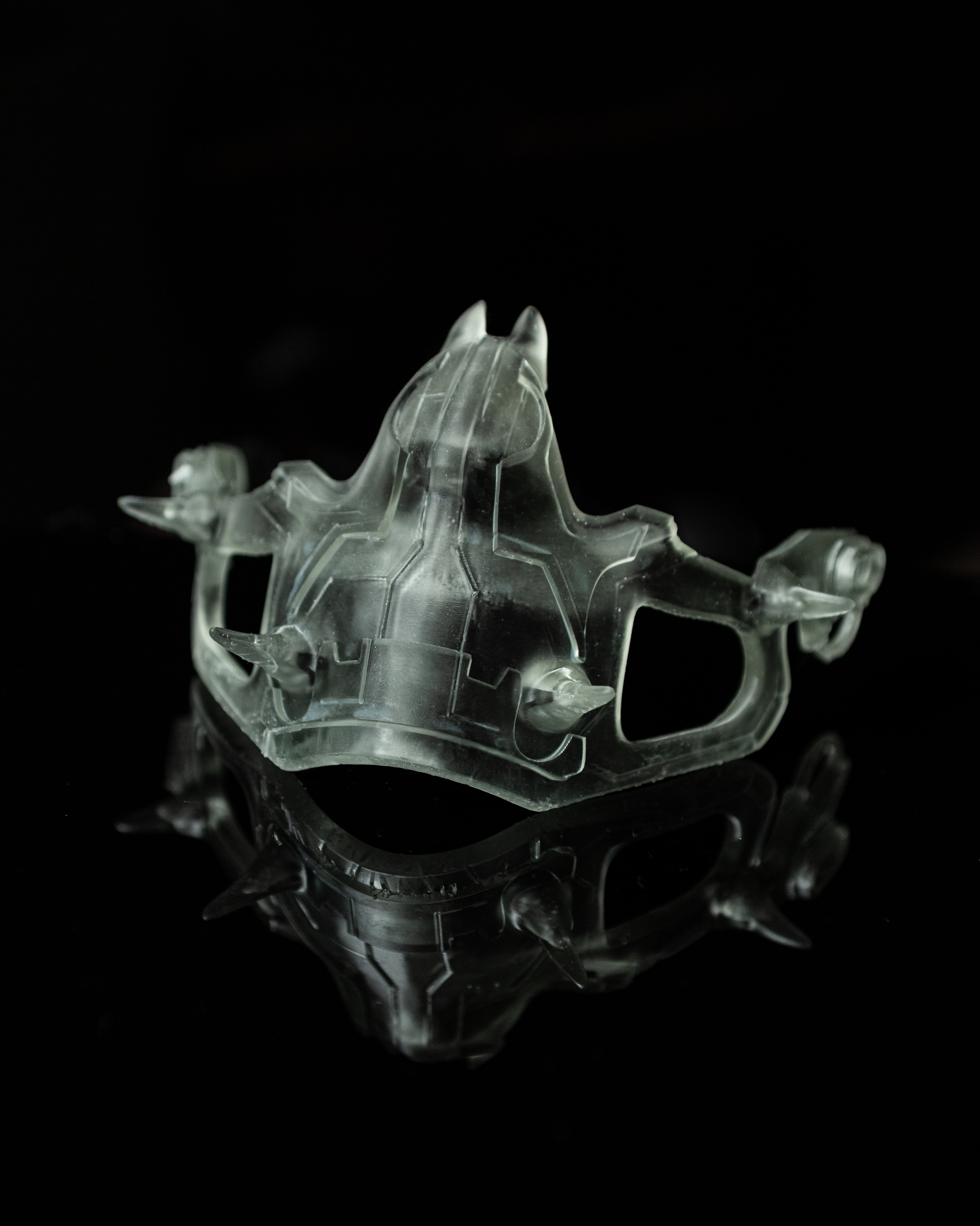 It begins with 3D modeling, where form and detail are carefully sculpted in software. The design is then translated into resin through high-resolution 3D printing. Finally, the piece undergoes cleaning and finishing, revealing the clarity and intricacy of the mask as it moves from screen to tangible artifact.